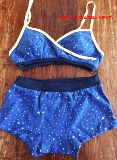 ぷっくりしてオススメです。 星のプリントのブラはブロードでバイヤステープを作りバインダー始末をしています。